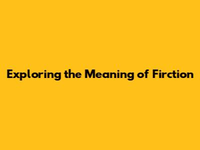 Firction Explained: Understanding The Term