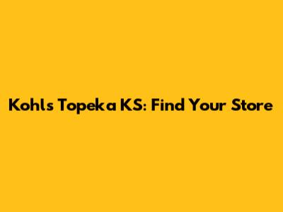 Topeka has several Kohl's locations. To find the one nearest you, use the Kohl's store locator on their website. Enter your zip code or city to see a list of stores and their addresses. — Mayuko Ryuzu OnlyFans: Exclusive Content Insights