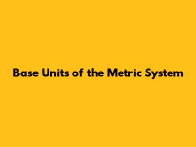 Base Units of the Metric System