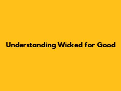 Understanding 'Wicked for Good'